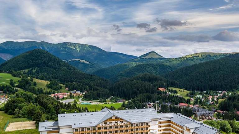 Das Residence Hotel & Club liegt nur 400 m von den nächsten Skipisten entfernt im Skigebiet Donovaly in der Niederen Tatra. Die Lage ermöglicht es Ihnen, die umliegende Natur und die Skipisten bequem zu erkunden. In der Nähe finden Sie auch Tennisplätze, ein Schwimmbad und einen Beachvolleyballplatz.