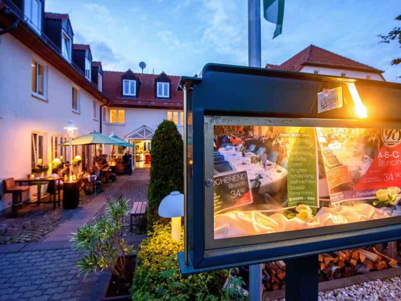 Das Hotelrestaurant des Residenz Hotels Leipzig ist zum Frühstück und Abendessen geöffnet und bietet eine Vielzahl von köstlichen Speisen. Im Sommer können die Gäste auch auf der Terrasse grillen und kühle Getränke genießen.