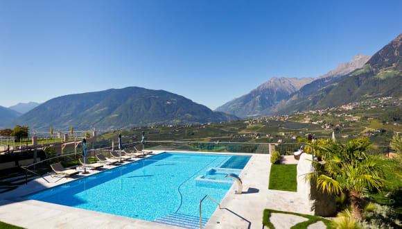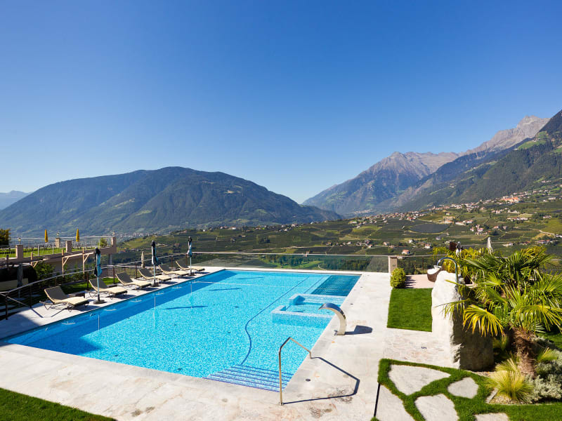 Ein Ausblick, der Sie in seinen Bann zieht Das Panoramahotel Resmairhof macht seinem Namen alle Ehre, denn das Bild, das unsere Gäste jeden Morgen beim Aufstehen sehen, scheint wahrlich wie gemalt zu sein. Wenn Sie auf der Panoramaliegewiese entspannen, oder auf unserer Terrasse gemütlich frühstücken und Ihre Aufmerksamkeit auf die umliegenden Berge und Täler richten, werden Sie wahrlich begeistert sein: das Schloss Schenna, Dorf Tirol, die Mutspitze, die Eingänge ins Passeiertal und in den Vinschgau; dies alles finden Sie täglich auf Ihrem „Ausblicks-Menüplan“. Um den einzigartigen Ausblick auch vom Zimmer aus zu genießen, sind alle unsere Wohnmöglichkeiten nach Süd- Westen ausgerichtet.