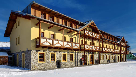 Das Hotel Resort Relax befindet sich am Ostufer des Stausees Lipno in Dolní Vltavice. Die Umgebung bietet eine malerische Landschaft und die Möglichkeit für verschiedene Aktivitäten wie Wandern, Radfahren und Wassersport. Das Hotel liegt auch in der Nähe des Bahnhofs und des Busbahnhofs von Černá v Pošumaví, von wo aus Sie bequem die Altstadt von Český Krumlov und den Nationalpark Šumava erreichen können.