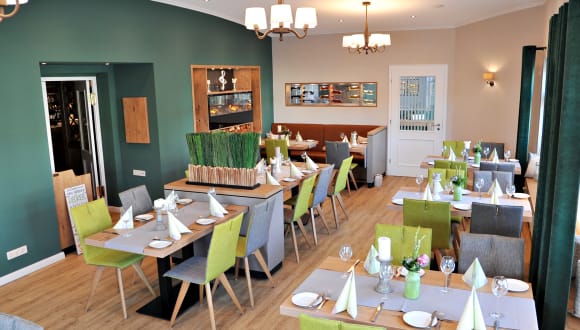 Im mehrfach ausgezeichnete Restaurant mit Wintergartenflair werden vorwiegend regionale, saisonale Spezialitäten rund um den kulinarischen Kalender serviert. Für jeden Geschmack und Geldbeutel. Für unsere Hotelgäste bieten wir ein täglich wechselndes Tagesgericht für kleines Geld an. Öffnungszeiten: Mo- Fr. Hotel Restaurant von 15.00 -22,00 Uhr Küche ab 17.30 Uhr-22,00 Sa – So. Hotel Restaurant und Küche von11.30 Uhr- 14.00 Uhr und 17,00 -22,00 Uhr Auf Anfrage für Gesellschaften/Tagungen auch zu anderen Zeiten geöffnet
