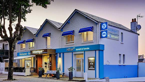 Das Hotel Restaurant L'Atlantique befindet sich im Stadtzentrum von Saint-Jean-de-Monts und ist nur 50 m vom Bahnhof und 1 km vom Strand entfernt. Die Lage ermöglicht es Ihnen, die Stadt bequem zu erkunden und alle Sehenswürdigkeiten und Aktivitäten in der Umgebung zu genießen. Der Wald Saint-de-Monts mit seinen Wander-, Rad- und Reitwegen ist nur 1 km entfernt und lädt zu erholsamen Spaziergängen in der Natur ein. Ebenso lohnenswert ist der Lebensmittelmarkt, der jeden Mittwoch und Samstag das ganze Jahr über stattfindet. Die Stadt Challans ist nur 15 km entfernt und die Stadt Nantes erreichen Sie nach 70 km.
