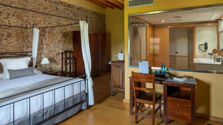 Die klimatisierten Zimmer im Es Portal Restaurant i Hotel Boutique - Adults only sind geschmackvoll eingerichtet und bieten modernen Komfort. Holzböden und Gartenblick verleihen den Zimmern eine gemütliche Atmosphäre. Zur Ausstattung gehören ein Kleiderschrank und eine Minibar. Das eigene Bad ist mit einer Badewanne ausgestattet, in der Sie sich nach einem ereignisreichen Tag entspannen können. Kostenloses WLAN ist in allen Zimmern verfügbar.