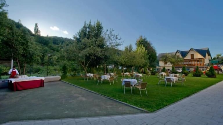 Das Restaurant des Hotels serviert asturische Küche, darunter traditionelle Gerichte wie Fabada, Pote asturiano und Frixuelos. Auf der Gartenterrasse können Gäste die herrliche Aussicht während der Mahlzeiten genießen. Zusätzlich bietet das Hotel Zimmerservice und spezielle Speisen für Diätbedürfnisse auf Anfrage an.