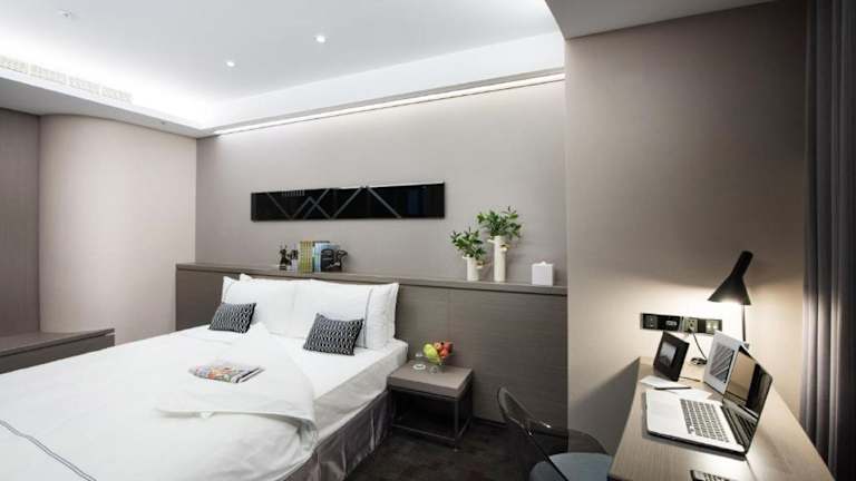 Die klimatisierten Zimmer sind mit einem Schreibtisch, einem Wasserkocher, einem Kühlschrank, einem Safe, einem Flachbild-TV und einem eigenen Badezimmer mit Bidet ausgestattet. Bettwäsche und Handtücher sind ebenfalls vorhanden.