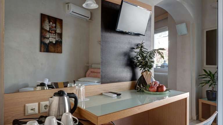 Die Zimmer im Hotel Rex sind komfortabel und verfügen über einen eigenen Balkon, von dem aus die Gäste die Aussicht auf Meteora genießen können. Jedes Zimmer ist mit Klimaanlage, Heizung und einem Flachbild-Sat-TV ausgestattet. Das private Badezimmer verfügt über einen Haartrockner. Kostenloses WLAN steht in allen Bereichen des Hotels zur Verfügung.
