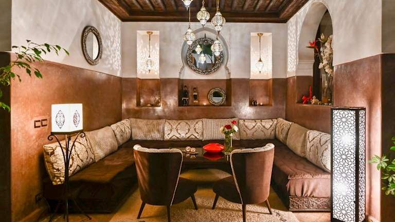 Das Riad Aya ist eine charmante Pension, die nur 10 Gehminuten vom pulsierenden Marktplatz Djemaa el Fna und dem Stadtteil Koutoubia entfernt liegt. Hier erwartet Sie ein authentisches marokkanisches Erlebnis mit einem Pool auf der Dachterrasse, Massageanwendungen auf Anfrage und individuell gestalteten Zimmern. Genießen Sie ein kontinentales Frühstück auf der Terrasse und probieren Sie köstliche marokkanische Gerichte im hoteleigenen Restaurant. Entspannen Sie am Kamin in den traditionellen Lounges und bleiben Sie dank des kostenlosen WLANs stets verbunden.