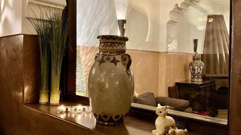 Das Riad Aya verwöhnt seine Gäste jeden Morgen mit einem köstlichen kontinentalen Frühstück, das auf der Terrasse serviert wird. Im hoteleigenen Restaurant können Sie authentische marokkanische Gerichte probieren und die Aromen und Gewürze der lokalen Küche entdecken.