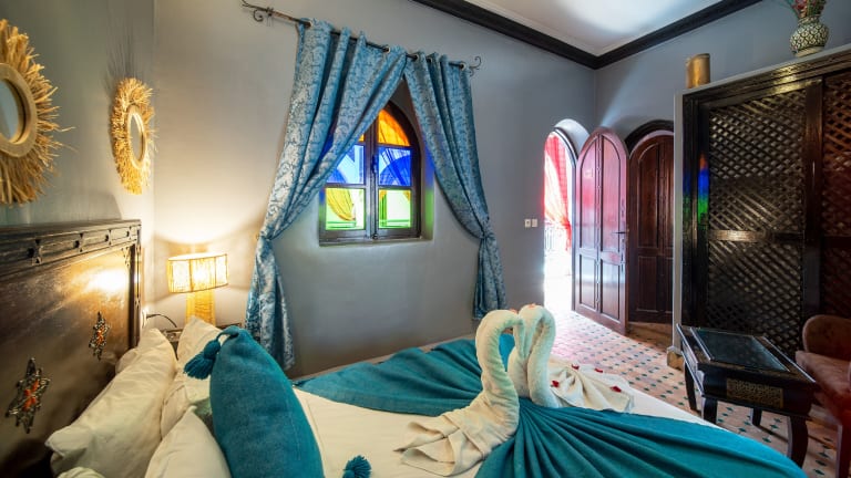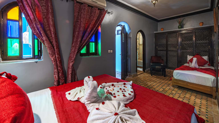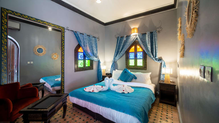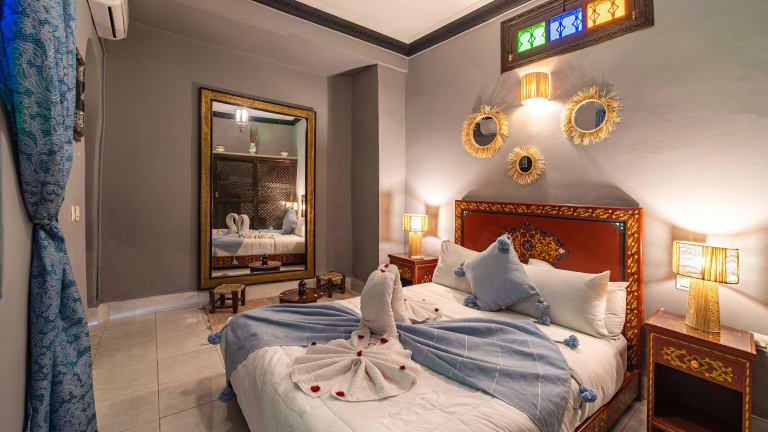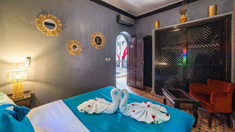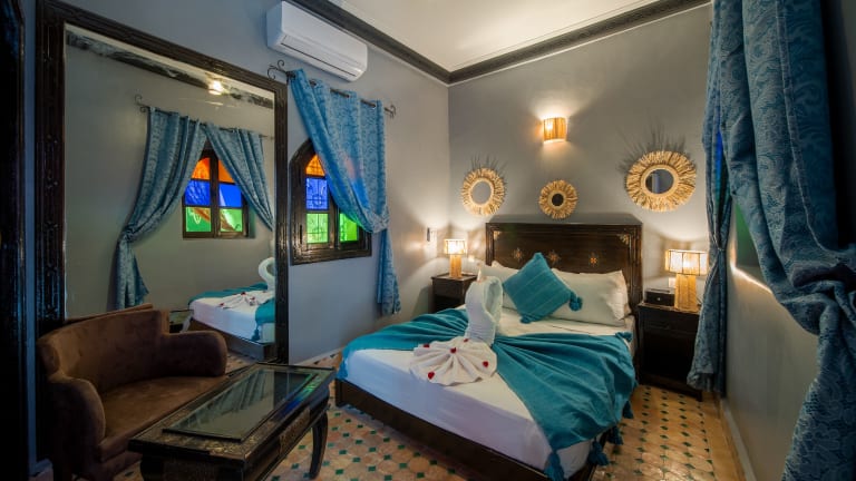 Die Zimmer im Riad Balkisse sind im traditionellen marokkanischen Stil eingerichtet und bieten eine komfortable und authentische Atmosphäre. Jedes Zimmer verfügt über Klimaanlage und ein eigenes Bad.