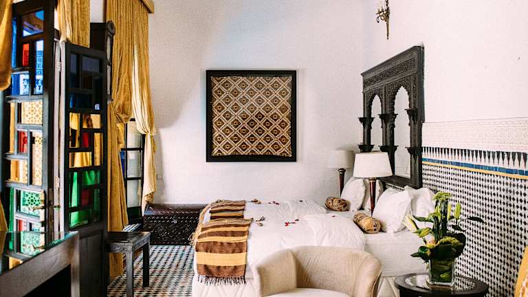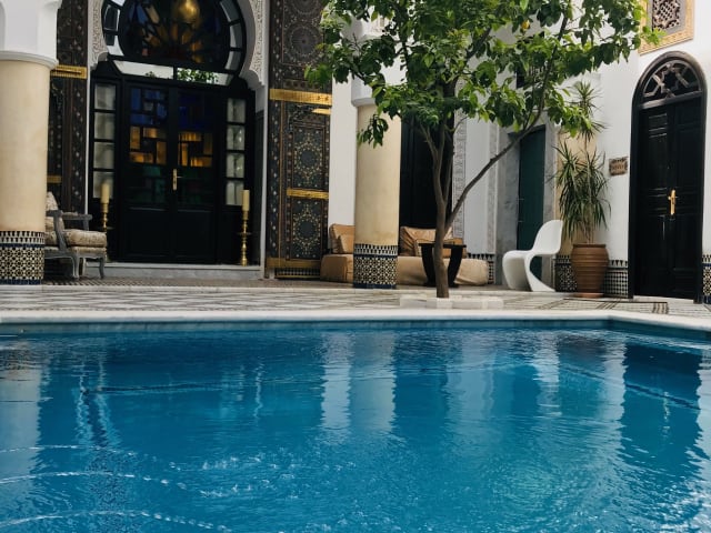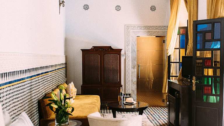Das Riad Maison Bleue and Spa in Fès bietet seinen Gästen eine luxuriöse Unterkunft mit einem Innenpool und einem Wellnessbereich. Von den Dachterrassen aus können Sie eine herrliche Aussicht genießen und in den traditionellen Lounges entspannen. Die Zimmer und Suiten sind mit modernen Annehmlichkeiten ausgestattet und einige verfügen über einen separaten Sitzbereich. Das Frühstück wird entweder auf der Terrasse oder im Zimmer serviert und in den Restaurants können Sie marokkanische und internationale Küche genießen. WLAN ist im gesamten Riad kostenlos verfügbar und öffentliche Parkplätze befinden sich in der Nähe. Die Medina ist bequem zu Fuß erreichbar.