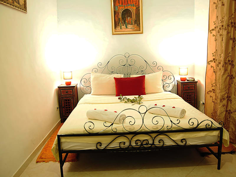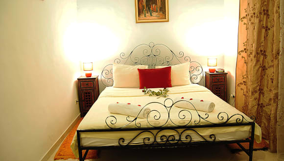 Das Riad Les Oliviers & Spa ist ein charmantes Hotel im Herzen der Medina von Marrakesch. Mit seiner Terrasse, dem Pool und dem Blick auf das Atlasgebirge bietet es eine entspannte Atmosphäre und eine ideale Lage neben dem Bahia-Palast. Genießen Sie die traditionelle marokkanische Einrichtung der Zimmer und lassen Sie sich bei einer Massage im Hamam verwöhnen. Morgens erwartet Sie ein köstliches marokkanisches Frühstück und im Restaurant können Sie traditionelle marokkanische Spezialitäten probieren. Das Hotel bietet auch kostenfreies WLAN und einen rund um die Uhr verfügbaren Wäscheservice.