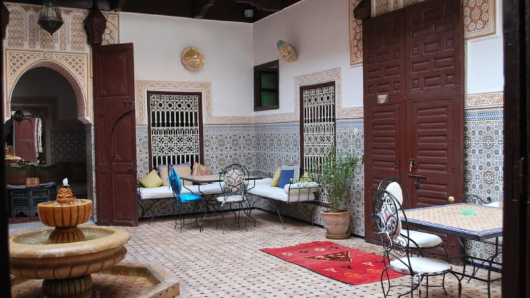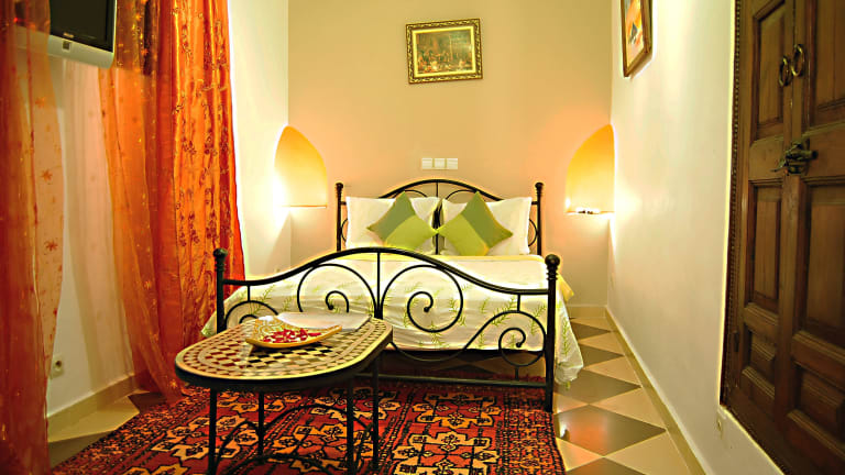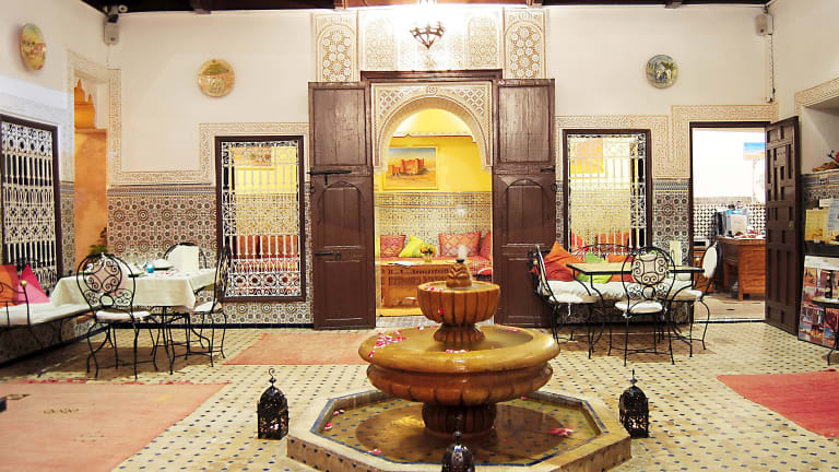 Morgens erwartet Sie ein köstliches marokkanisches Frühstück mit Pfannkuchen und Gebäck, das entweder auf der Terrasse oder in Ihrem Zimmer serviert wird. Im Restaurant des Riads können Sie traditionelle marokkanische Spezialitäten genießen.