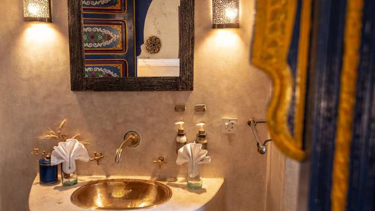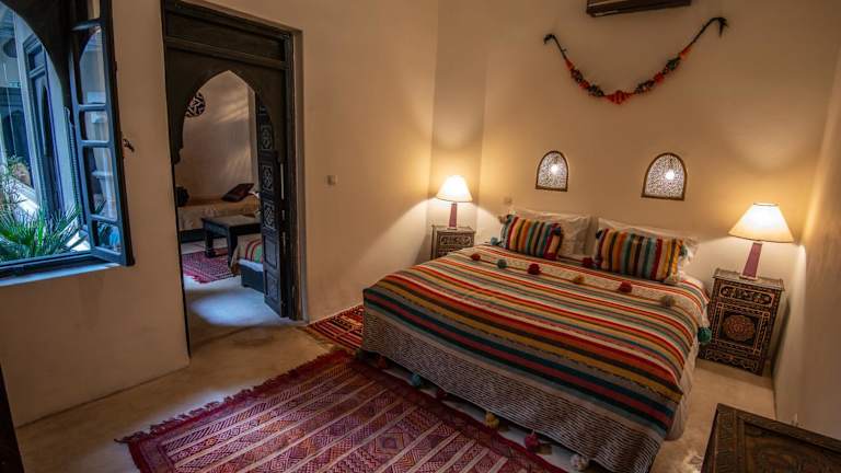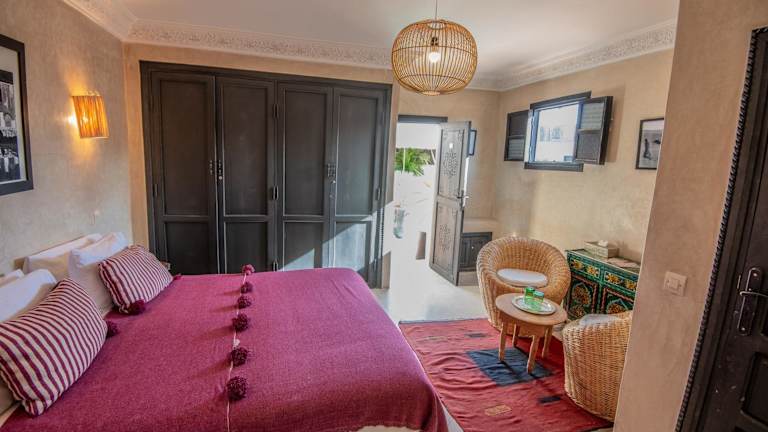 Die klimatisierten Zimmer im Riad Spa Sindibad sind komfortabel und mit modernen Annehmlichkeiten ausgestattet. Jedes Zimmer verfügt über ein eigenes Bad und kostenfreies WLAN. Die Einrichtung ist im traditionellen marokkanischen Stil gehalten und schafft eine gemütliche und einladende Atmosphäre.