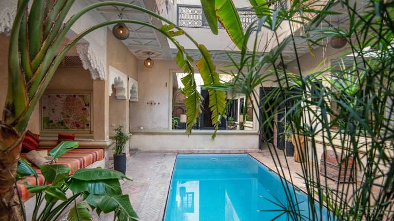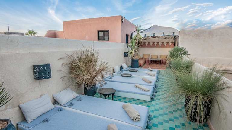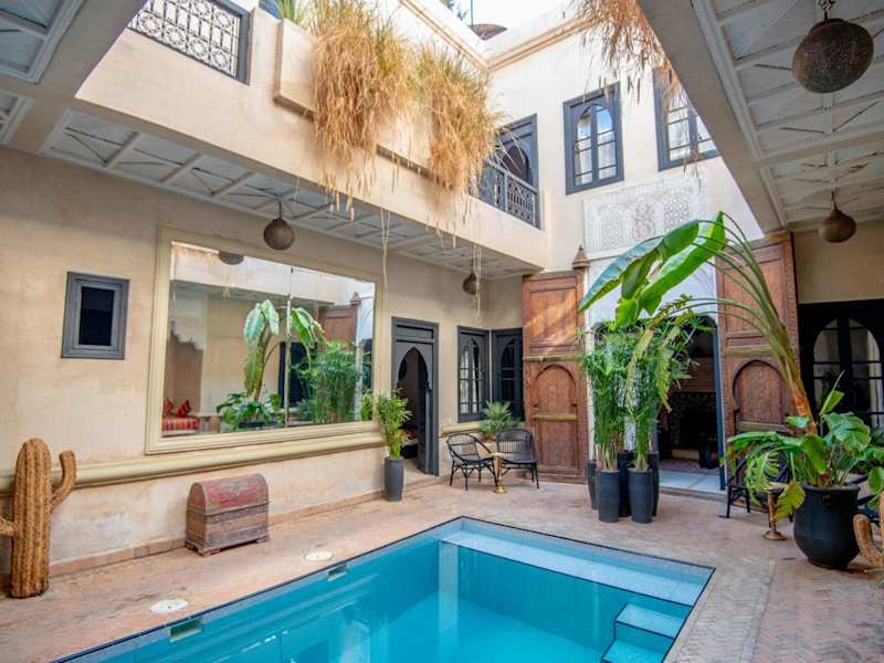 Das Riad Spa Sindibad in Marrakesch ist ein charmantes Hotel in der Medina, das mit einem Innenhofpool und einem Hamam zum Entspannen einlädt. Die klimatisierten Zimmer bieten kostenfreies WLAN und ein eigenes Bad. Genießen Sie jeden Morgen ein reichhaltiges Frühstück und auf Anfrage traditionelle marokkanische Gerichte. Das Spa bietet Hamam, Schönheitsanwendungen und Massagen. Die Lage des Riad ist ideal, nur 50 m vom Tor Bab Yacout entfernt und in der Nähe von Sehenswürdigkeiten wie dem Jardin Majorelle und dem Djemaa el Fna Platz.
