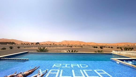 Das Hotel Riad Xaluca in Merzouga ist der ideale Ort für einen entspannten und komfortablen Aufenthalt in der Wüste. Mit einem Außenpool, einem schönen Garten und einer Terrasse bietet das Riad eine perfekte Umgebung, um die Ruhe und Schönheit der Umgebung zu genießen. Die Zimmer sind modern und komfortabel eingerichtet und verfügen über alle Annehmlichkeiten, die man für einen angenehmen Aufenthalt benötigt. Ein kontinentales Frühstück wird jeden Morgen serviert und es gibt auch einen Whirlpool, in dem man sich nach einem ereignisreichen Tag entspannen kann.