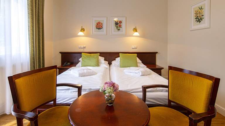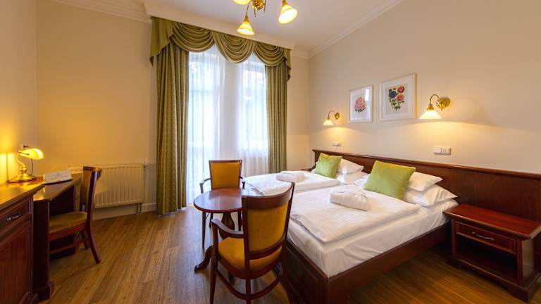 Das Parkhotel Richmond in Karlsbad ist ein historisches Hotel mit einer beeindruckenden Geschichte und einer ruhigen Lage am Ufer des Flusses Tepla. Das Hotel ist von einem schönen Park umgeben und bietet eine Vielzahl von Annehmlichkeiten wie ein stilvolles Restaurant, ein Café mit Sommerterrasse, eine Pianobar und eine Billard-Lounge. Der Wellnessbereich mit Pool und der kostenfreie Nachmittagssnack sind weitere Highlights des Hotels.