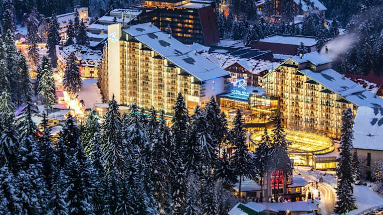 Das Rila Hotel Borovets befindet sich im Herzen des ersten Bergresorts auf dem Balkan - Borovets, etwa 70 km von Sofia entfernt. Das Hotel liegt am Ende der Skipisten und ist nur 200 m von der Gondelbahn entfernt. In der Umgebung finden Sie mehrere Vierersessellifte sowie diverse Einkaufs- und Unterhaltungsmöglichkeiten. Der Golfplatz ist etwa 60 km entfernt.