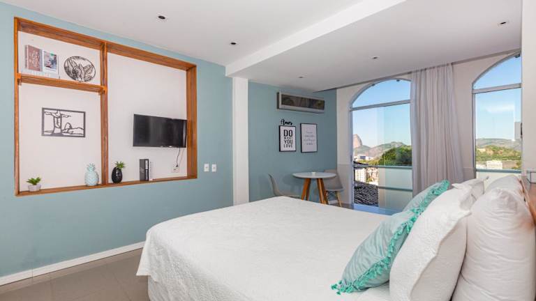Das Hotel Santa Vista Rio bietet Ihnen einen fantastischen Aufenthalt im Herzen des Viertels Santa Teresa in Rio de Janeiro. Genießen Sie den atemberaubenden Blick auf die Corcovado Christusstatue, den Zuckerhut und die Guanabara-Bucht. Das Hotel verfügt über kostenloses WLAN und einen Pool auf dem Dach. Die Zimmer sind komfortabel eingerichtet und bieten einen Flachbildfernseher mit Kabelkanälen, eine Sitzecke und Klimaanlage. Einige Kategorien verfügen über einen Whirlpool. Entspannen Sie sich am Außenpool und genießen Sie dabei den Blick auf das Meer und die Berge. Das Hotel liegt nur 10 Autominuten vom Maracanã-Stadion und 8 km vom Strand Copacabana entfernt.