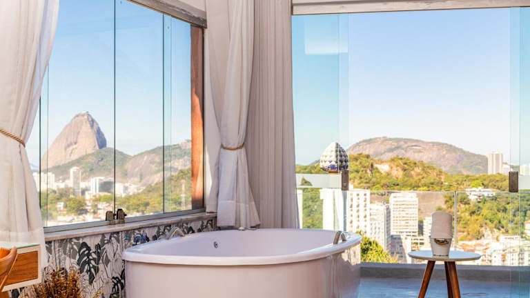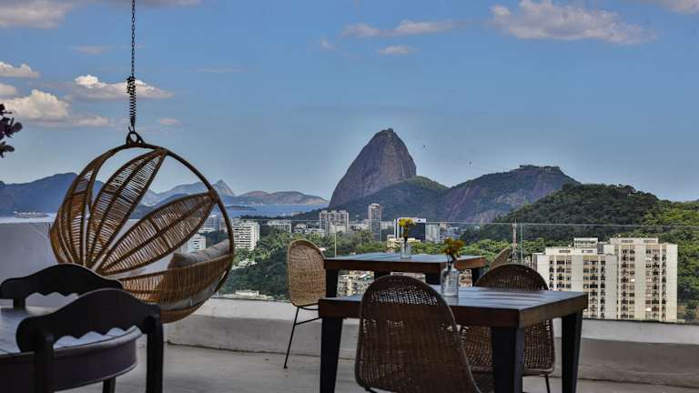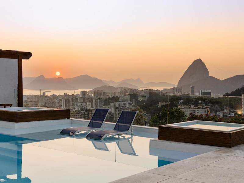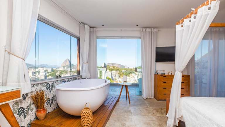 Das Hotel Santa Vista Rio liegt im Viertel Santa Teresa in Rio de Janeiro und ist nur eine 20-minütige Fahrt vom Botafogo-Strand entfernt. Von hier aus haben Sie einen herrlichen Blick auf die Corcovado Christusstatue, den Zuckerhut und die Guanabara-Bucht. Die Umgebung bietet viele Sehenswürdigkeiten und Aktivitäten, darunter das Maracanã-Stadion, das in nur 10 Autominuten erreichbar ist, sowie den berühmten Copacabana-Strand, der 8 km entfernt liegt.