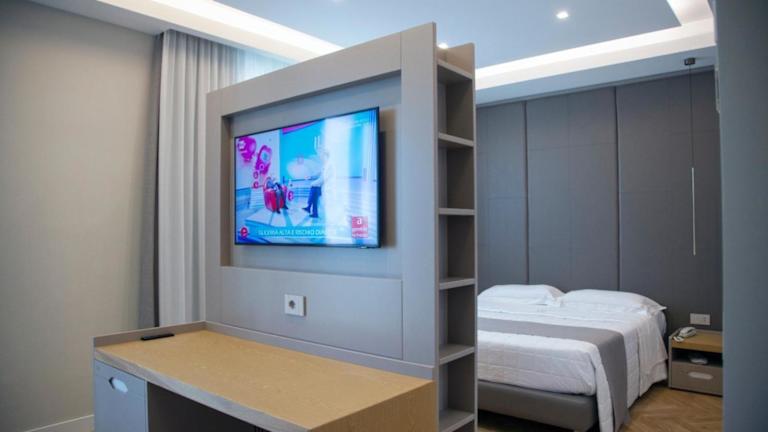 Die Zimmer im Hotel Ristorante Aeclanum sind mit einem Kleiderschrank, Schreibtisch, Flachbild-TV und teilweise einem Balkon ausgestattet. Zudem verfügen sie über einen Safe und ein eigenes Badezimmer.