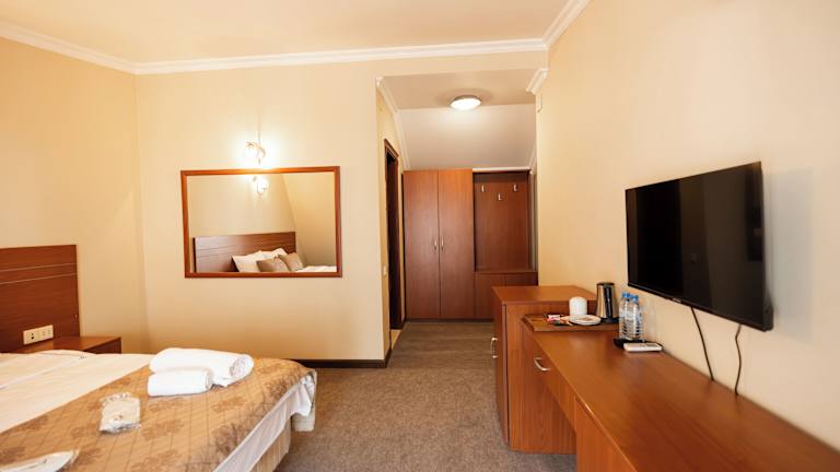 Das Ritsa Hotel in Batumi besticht vor allem durch seine unschlagbare Lage mitten in der Altstadt, in der Zviad-Gamsakhurdia-Straße 16, direkt am Piazza-Platz und nur 100 Meter vom Strand entfernt. Alle wichtigen Sehenswürdigkeiten, Restaurants und Geschäfte sind bequem zu Fuß erreichbar – ein großer Pluspunkt.