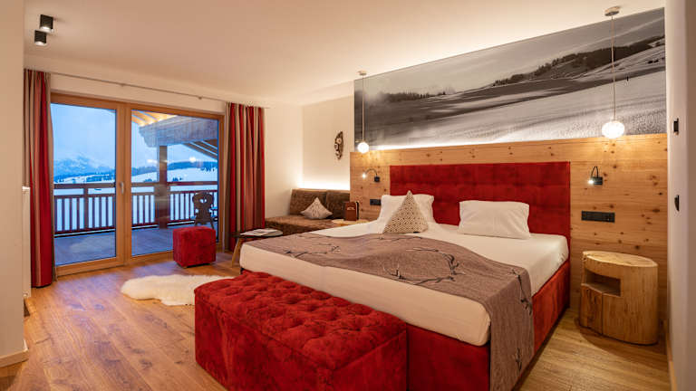 Die Zimmer im Hotel Ritsch sind gemütlich im alpinen Stil eingerichtet und verbinden traditionellen Charme mit angenehmem Komfort. Warme Materialien, viel Holz und liebevolle Details schaffen eine behagliche Atmosphäre zum Entspannen. Große Fenster sorgen für helle Räume und eröffnen – je nach Lage – einen herrlichen Blick auf die umliegende Bergwelt der Dolomiten. Die ruhige Umgebung trägt zusätzlich zu einem erholsamen Aufenthalt bei.