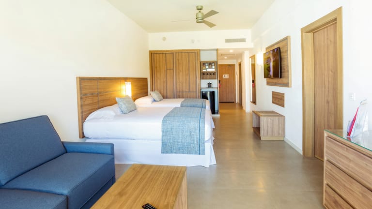 Es stehen Ihnen 716 mit Liebe zum Detail eingerichtete Zimmer (Doppelzimmer, Duplex-Zimmer, Dreibettzimmer, Juniorsuiten, Jacuzzi Suiten) zur Auswahl. There are 4 disabled rooms with shower and adapted bathroom facilities available. ··· Alle Zimmer bieten Bad mit Badewanne/WC, Haartrockner, 110 V, Telefon, WiFi (gegen Gebühr), zentralgesteuerte Klimaanlage, Deckenventilator, Minibar, Getränkespender, Sat-TV (Flachbildschirm), elektronischer Safe, Bügeleisen und Bügelbrett, Balkon oder Terrasse ··· Doppelzimmer mit 2 Betten 125 x 200 cm oder 1 Bett 200 x 200 cm, mit Meerblick buchbar ··· Duplex-Zimmer im Maisonette-Stil mit Schlafzimmer mit 1 Bett 200 x 200 cm und Bad/WC im Obergeschoss, Wohnraum mit 2 Schlafsofas, 2º TV und Bad/WC im Erdgeschoss, Terrasse ··· Dreibettzimmer mit 1 Bett 200 x 200 cm und 1 Bett 125 x 200 cm, Meerblick ··· Juniorsuiten mit 1 Bett 200 x 200 cm, größerem Balkon/Terrasse, Meerblick ··· Jacuzzi Suiten mit: Badezimmer mit Hydromassage-Badewanne, Duschkabine und Bidet 1 Bett 200 x 200 cm Integrierter Wohnbereich (1 Stufe tiefer gelegen) mit Sofa Ankleideraum Jacuzzi auf der Terrasse Meerblick