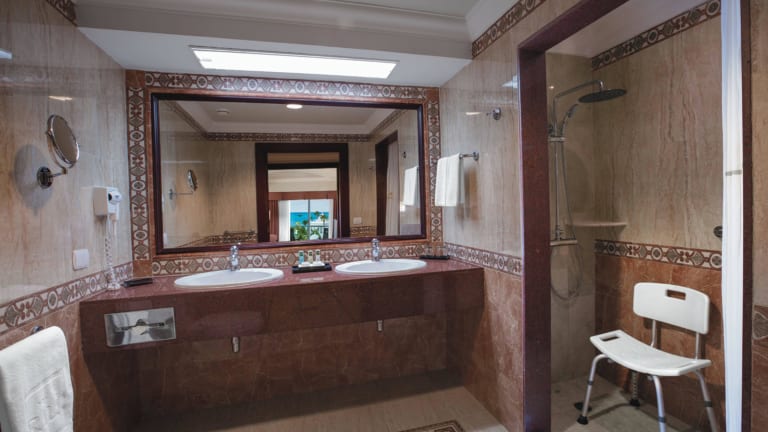 Es stehen Ihnen 372 mit Liebe zum Detail eingerichtete Zimmer (Junior-Suite, Suite, Jacuzzi-Suite) zur Auswahl, drei davon sind barrierefrei. ··· Junior-Suiten mit Turn Down-Service, Badezimmer mit Dusche, Bademantel, Haartrockner, 110 V, Telefon, WiFi (gratis), zentralgesteuerte Klimaanlage, Deckenventilator, Minibar, Kaffeemaschine, Getränkespender, Sat-TV (Flachbildschirm), integrierter Wohnbereich mit Sofa oder Schlafsofa (2 Stufen tiefer gelegen), Safe, Bügeleisen und Bügelbrett, größtenteils mit Balkon, größtenteils mit Meerblick, einige mit Verbindungstür ··· Junior-Suiten mit 1 Kingsize-Bett (200 x 200 cm) oder 2 Betten (125 x 200 cm) ··· Suiten mit 1 Kingsize-Bett (200 x 200 cm), 2. Sat-TV (Flachbildschirm), separatem Salon, Ankleideraum ··· Jacuzzi-Suiten mit 1 Kingsize-Bett (200 x 200 cm), integriertem Wohnbereich (2 Stufen tiefer gelegen) oder separatem Salon Jacuzzi auf dem Balkon, Meerblick
