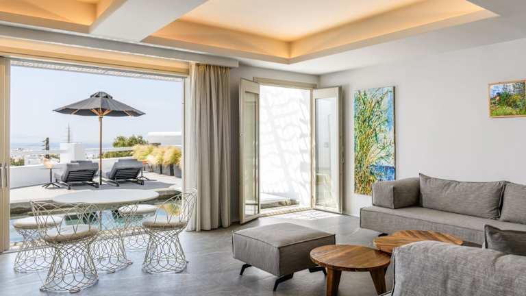 Das Hotel befindet sich im Herzen von Mykonos-Stadt, in der Nähe bekannter Sehenswürdigkeiten wie den Windmühlen von Mykonos (500 m) und Klein-Venedig (6 Gehminuten). Zu den weiteren Attraktionen in der Umgebung zählen das Archäologische Museum von Mykonos und der Alte Hafen von Mykonos. Der nächstgelegene Flughafen ist in 2 km Entfernung erreichbar.