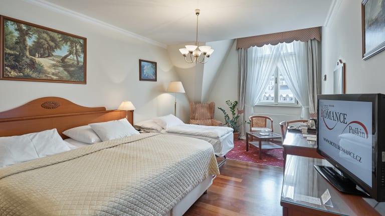Hotel Romance öffnet seine Tore zu einem angenehmen Aufenthalt in Jugendstil-Atmosphäre in Karlsbad. Die Gäste sind nicht nur von einer Jahrhunderte alten Kurgeschichte umgeben, unmittelbar nehmen sie auch an einem reichen Kulturleben teil. Hotel Romance befindet sich im Kurzentrum, in der Nähe der Sprudel- und Marktkolonnade. Es bietet den Gästen Einzel- und Doppelzimmer, zwei Appartement und zwei Junior Suiten mit Bad oder Dusche, WC, Telefon, Radio, Farbfernseher mit Satellitenempfang, Minibar, Tresor und WiFi Internetzugang an.