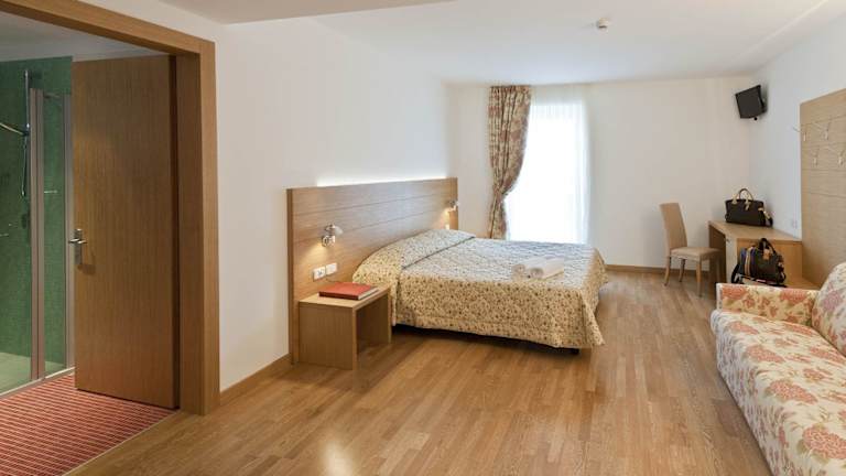 Das Hotel Romanda liegt zentral in Levico Terme und ist nur etwa 15 km vom Strand entfernt. Die Umgebung bietet zahlreiche Freizeitmöglichkeiten wie Wandern und Wassersport. In der Nähe des Hotels befinden sich auch Sehenswürdigkeiten wie das Schloss Rodenegg und die Stadt Bozen.