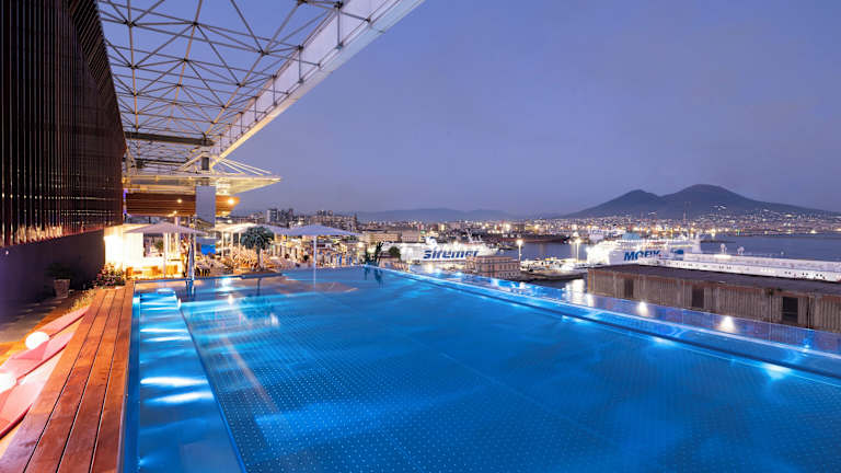 Das ROMEO Napoli Hotel in Neapel bietet einen luxuriösen Aufenthalt mit Blick auf den Hafen und eine Vielzahl von Annehmlichkeiten. Das Hotel verfügt über einen Pool auf der Dachterrasse, kostenloses WLAN und ein Restaurant mit Gourmetküche und Meerblick. Der Wellnessbereich bietet einen Fitnessraum, Whirlpools, Saunen und Erlebnisduschen. Die Lage gegenüber dem Fährhafen ermöglicht Ausflüge nach Capri und Ischia.