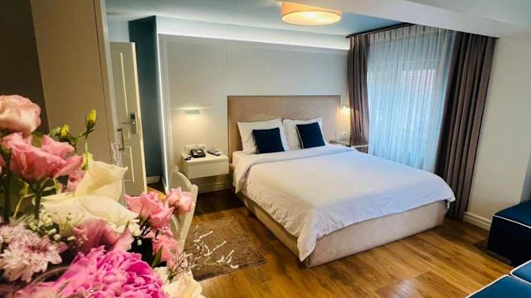 Das Hotel Romeo liegt in Korçë, nur 43 km vom malerischen Ohridsee entfernt. Umgeben von einer wunderschönen Landschaft bietet das Hotel eine ruhige und entspannte Atmosphäre. In der Nähe finden Sie auch das Kloster Saint Naum, das einen Besuch wert ist. Der nationale Flughafen Kastoria ist etwa 71 km entfernt und bietet eine gute Anbindung an die Region.