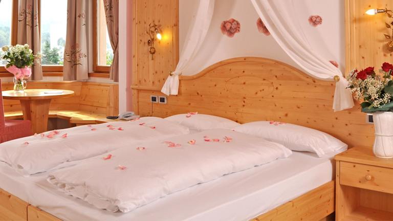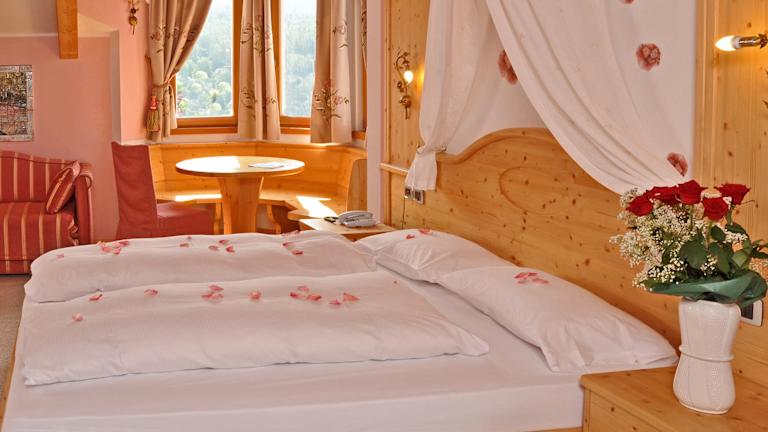 Die Zimmer im Hotel Rosa Resort sind im alpinen Stil eingerichtet und verfügen über Holz- oder Teppichböden sowie einen Flachbild-Kabel-TV. Jedes Zimmer ist mit einem Balkon ausgestattet, von dem aus die Gäste die Berglandschaft überblicken können. Zur Zimmerausstattung gehören eine Heizung, ein Safe, ein Schreibtisch, WLAN, ein Telefon, ein Fernseher und ein Badezimmer mit Dusche, Haartrockner und Telefon. Es gibt rollstuhlgerechte Zimmer mit barrierefreiem Badezimmer sowie Familien- und Nichtraucherzimmer.