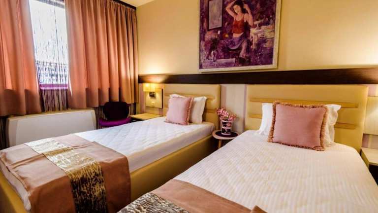 Das Hotel Rostov in Plewen ist der ideale Ort, um Ihren Aufenthalt in der Stadt zu genießen. Die gut ausgestatteten Zimmer bieten einen atemberaubenden Panoramablick und kostenfreies WLAN. Freuen Sie sich auf ein unterhaltsames Angebot im Hotel, wie einen Nachtklub, ein Kasino und eine Lobbybar. Das Restaurant des Hotels verwöhnt Sie mit Autorenküche und beliebten internationalen Gerichten. Genießen Sie auch das Bar&Diner im großzügigen Sommergarten. Das Hotel liegt zentral in der Innenstadt und ist nur wenige Gehminuten von Restaurants, Cafés und Bars entfernt. Entdecken Sie auch den nahegelegenen Kaylaka-Park.