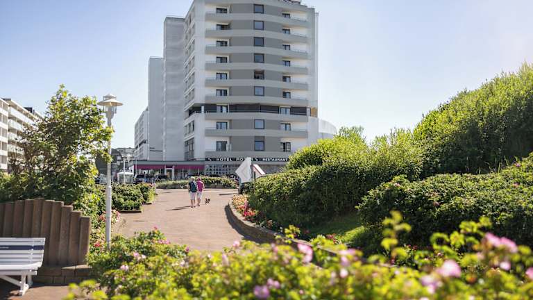 Das Hotel Roth am Strande befindet sich auf der beliebten Insel Sylt, direkt gegenüber dem Wasserpark Sylter Welle. Die Strandpromenade und die Nordsee sind nur einen kurzen Spaziergang entfernt, so dass Sie die Schönheit der Küste in vollen Zügen genießen können. Die Lage des Hotels bietet auch eine gute Anbindung an den öffentlichen Verkehr, mit dem Bahnhof von Westerland und der Station des Sylt Shuttle (Autozug) in der Nähe. Von hier aus können Sie bequem zum Festland gelangen und die Umgebung erkunden.