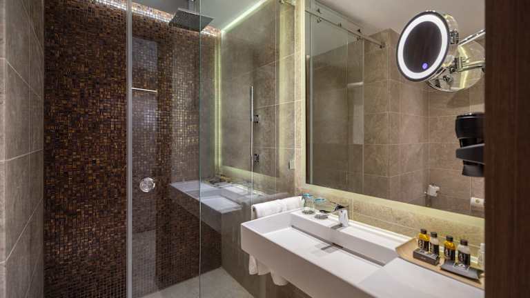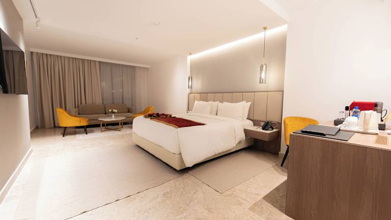 Die Zimmer sind mit einem Schreibtisch ausgestattet und bieten Klimaanlage, einen Safe und einen Flachbild-TV.