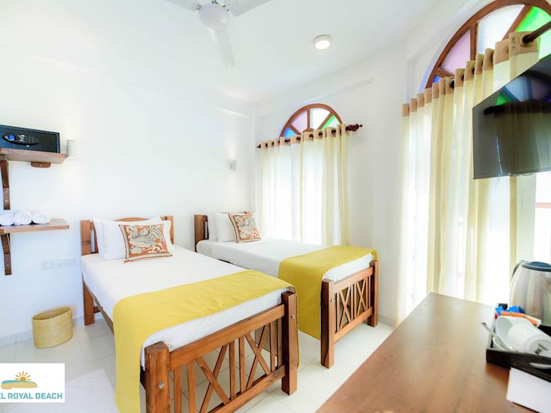 Das Royal Beach Restaurant am Strand bietet internationale Gerichte sowie köstliche lokale Spezialitäten, darunter das berühmte srilankische Reis und Curry. Frische Fischgerichte ergänzen das Angebot.