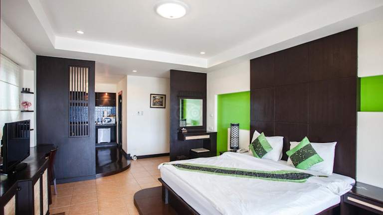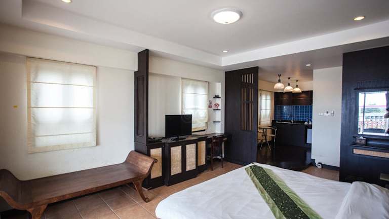 Die Zimmer im Royal Nakara Ao Nang Hotel sind in einem modernen Stil mit thailändischem Flair gestaltet. Sie verfügen über dunkle Holzmöbel und einen großen Balkon, auf dem Sie sich sonnen und entspannen können. Zur Ausstattung gehören Klimaanlage, DVD-Player und Zimmerservice. Genießen Sie den Komfort und die Annehmlichkeiten, die Ihnen diese Unterkunft bietet.