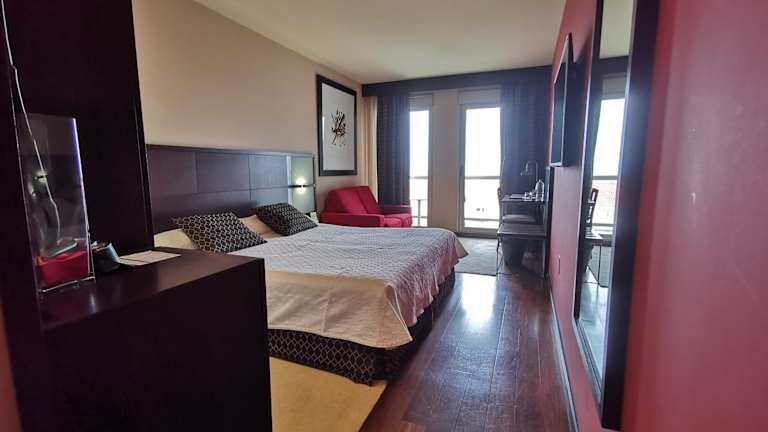 Die Zimmer im Hotel Royal Nayef sind geräumig und bieten einen herrlichen Blick auf das Meer. Das geschmackvolle Dekor und das natürliche Tageslicht verleihen den Zimmern eine angenehme Atmosphäre. Jedes Zimmer ist mit modernen Annehmlichkeiten ausgestattet, um Ihren Aufenthalt so komfortabel wie möglich zu gestalten.
