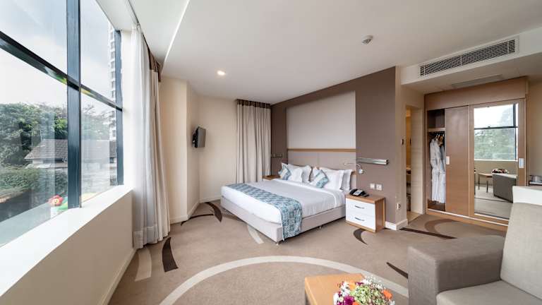 Die 165 Zimmer des PrideInn Azure Hotel Nairobi bieten eine angenehme Atmosphäre mit natürlichen Farben und modernen Annehmlichkeiten. Jedes Zimmer verfügt über eine Klimaanlage, einen Kamin, einen Flachbild-Sat-TV, eine Minibar und ein eigenes Bad mit Dusche und kostenfreien Pflegeprodukten. Ein Safe sorgt für zusätzliche Sicherheit während Ihres Aufenthalts.
