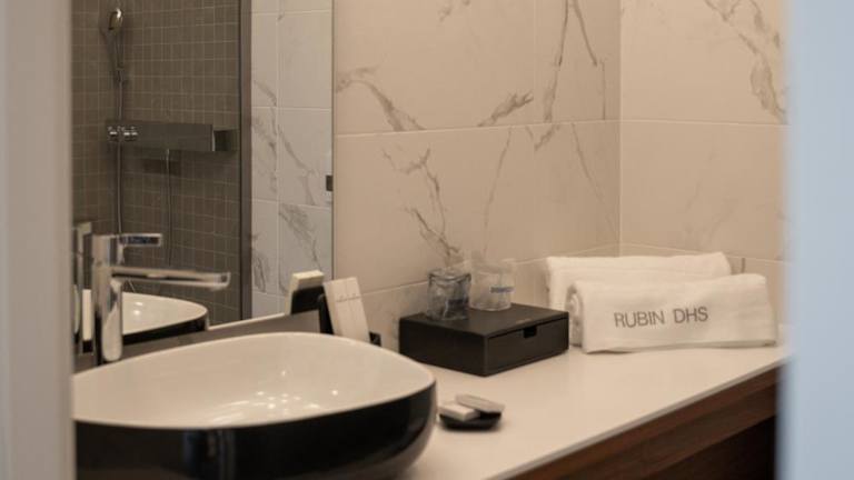 Jedes Zimmer im Hotel Rubin DHS ist mit einem Schreibtisch, einem TV, einem eigenen Badezimmer, Bettwäsche, Handtüchern sowie einer Veranda oder einem Patio mit Stadtblick ausgestattet. Zudem stehen den Gästen ein Kleiderschrank und ein Wasserkocher zur Verfügung.