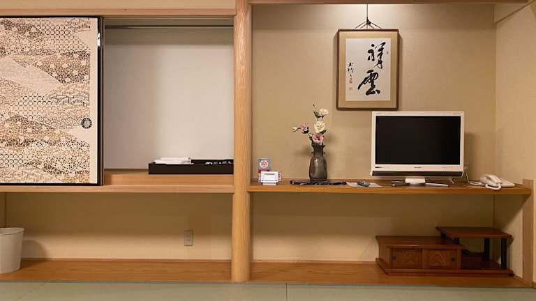 Die Zimmer im Ryokan Sawaya Honten sind authentisch und traditionell gestaltet. Sie verfügen über Tatamiböden, Schiebetüren aus Papier und traditionelle Futonbetten. Jedes Zimmer ist mit einem TV, einem Kühlschrank und einem eigenen Badezimmer ausgestattet. Genießen Sie den Komfort und die Ruhe dieser traditionellen Unterkunft, die Ihnen ein einzigartiges Erlebnis bietet.