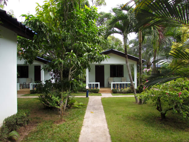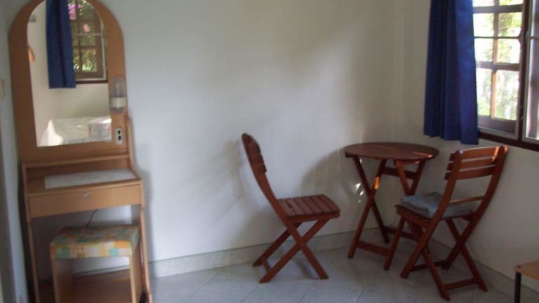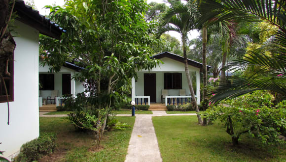 Die Bungalows im Sabai Resort sind von üppigem Grün umgeben und bieten Ihnen eine tropische Atmosphäre. Jeder Bungalow verfügt über ein eigenes Bad mit Warmwasserdusche sowie einen Kühlschrank und einen gemütlichen Sitzbereich. Die Zimmer sind mit Fliesenböden ausgestattet und bieten Ihnen einen komfortablen Rückzugsort.