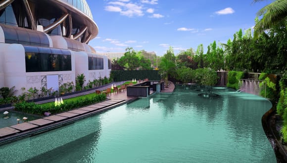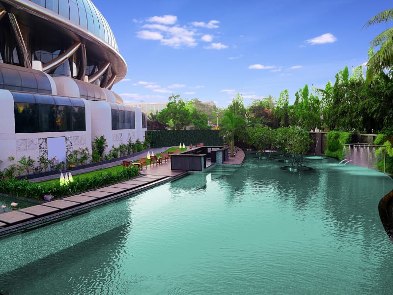 Die gastronomischen Einrichtungen des Hotels umfassen mehrere Restaurants, darunter 'The Earth Plate', das eine Vielzahl internationaler und regionaler Gerichte anbietet, und 'Namak', das indische Spezialitäten serviert. Weitere Optionen sind das vegetarische 'Manuhaar', das mediterrane Restaurant 'Mabruk' sowie 'E.A.S.T.', das asiatische Küche bietet. Zudem gibt es eine Bar und eine Lounge mit Blick auf den Lagunenbereich.