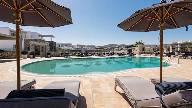 Das Hotel liegt im Zentrum der Insel Paros, nur rund 1 km vom Hauptort Naousa entfernt. In der Umgebung befinden sich der Sandstrand Kolympithres und zahlreiche Sehenswürdigkeiten. Der Flughafen Paros ist etwa 20 km entfernt.