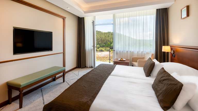 Die modernen Zimmer im Saliris Resort Spa Hotel sind klimatisiert und verfügen über einen Balkon, auf dem Sie die frische Luft und die schöne Aussicht genießen können. Jedes Zimmer ist mit Kabel-TV ausgestattet und bietet Ihnen ein gemütliches Ambiente für Ihren Aufenthalt. Bademäntel stehen Ihnen ebenfalls zur Verfügung, um Ihren Komfort zu erhöhen.