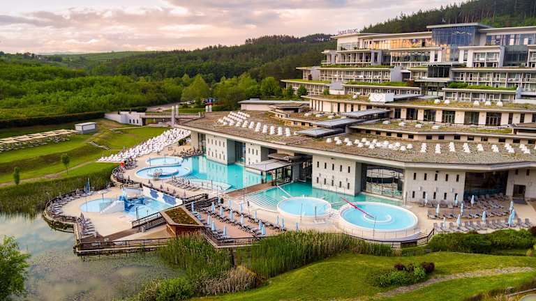 Das Saliris Resort Spa Hotel liegt in einem weitläufigen Park in Egerszalók, eingebettet zwischen den beeindruckenden Gebirgszügen Mátra und Bükk. Die Stadt Eger ist nur 6 km entfernt und lädt zu einem Besuch ein. Hier können Sie die historische Atmosphäre genießen und die Sehenswürdigkeiten erkunden. Die Umgebung bietet zudem zahlreiche Möglichkeiten für Outdoor-Aktivitäten wie Wandern oder Radfahren.