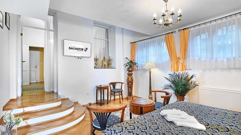 Das Hotel Salvator befindet sich in Karlsbad, nur 300 m von der Heißen Quelle entfernt. In der näheren Umgebung finden sich interessante Sehenswürdigkeiten wie die Marktkolonnade, die Mühlenkolonnade und die St. Maria-Magdalena Kirche.