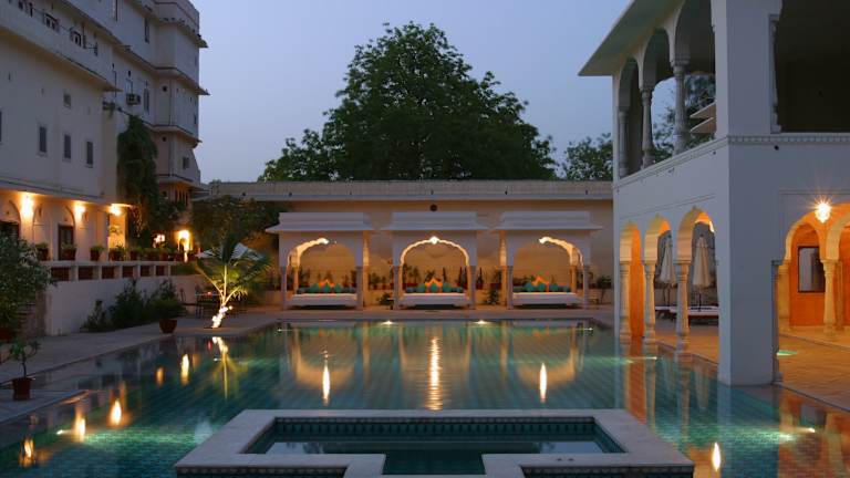 Das Samode Haveli in Jaipur ist ein historischer königlicher Herrensitz, der den Stil und die Eleganz der königlichen Familie widerspiegelt. Hier können Sie in einem einzigartigen Ambiente entspannen und den Charme vergangener Zeiten genießen. Freuen Sie sich auf einen Außenpool, einen Spa- und Wellnessbereich sowie ein Unterhaltungsprogramm mit traditionellem Puppenspiel und Musik. Das hoteleigene Restaurant verwöhnt Sie mit regionaler und internationaler Küche.